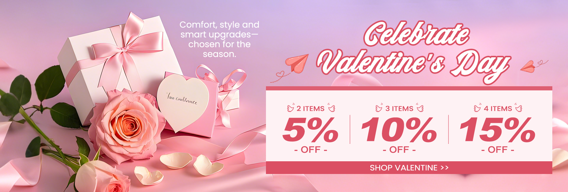 2 items -5% | 3 items -10% | 4 items -15%